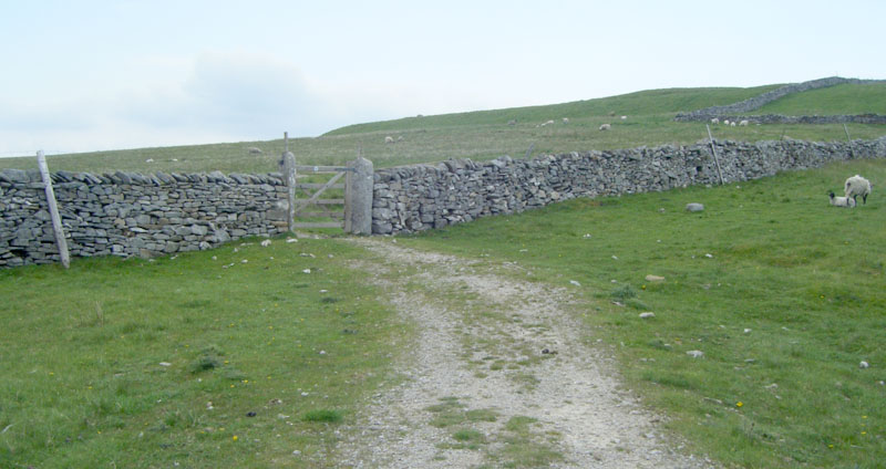Start at a gate 50 yds south of the Dent Rd junction, where a sign on the gate indicates "Pennine Bridleway" and "Cold Keld Gate 2.5 miles." The path beyond is a track capable of taking farm vehicles, 4 x 4's, and quad bikes. Take this track which initially heads off in an easterly direction, then bends south east, when you pass a small sheepfold on the left, by a dilapidated dry stone wall. | |
