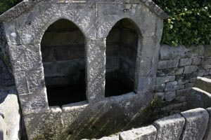| Turn right and follow the road. Don't miss the well at the first cross roads. Go straight on at the cross roads, then turn right at the next road junction. This leads down to the river and the Bridge Inn, where we enjoyed much needed refreshment, sat in the large garden overlooking the river. | |