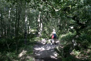 The path at first continues climbing, then levels out through the wood. At a junction of paths we took the left fork, which climbed up
